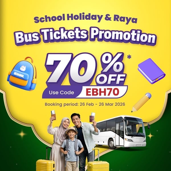 * Only 0.01% trips slightly higher than counter price. ** Only applicable for transactions without the use of discount code and trips offered by certain companies. *** For certain trips only, discount already reflected in the ticket price itself (i.e. lower price than bus counters). * Bus pictures are for reference only. * Trip durations are estimated time only.